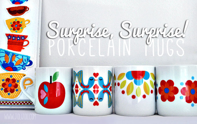 Jetzt ist es endlich soweit und die Surprise, Surprise Stoffe stehen kurz vor der Auslieferung! Bereits im Laufe der nächsten Woche werden sie europaweit im Einzelhandel und in zahlreichen Online-Shops erhältlich sein und ihr könnt euch gar nicht vorstellen, wie sehr ich mich freue! Die Idee für diese Stoffkollektion trage ich nämlich schon sehr lange mit mir herum. Bereits 2011 nach der Erstellung der Grundmotive Sweet Apple, Kissing Birds, Fall Flower und Retro Daisy für diese Tassenkollektion dachte ich, wie schön es doch wäre, mehr aus den Motiven zu machen.