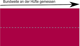 1. Nehmt einen gut dehnbaren Jersey (Baumwoll-Gemisch, Anfänger nehmen lieber keinen Viskosejersey der rutscht zu sehr), messt eure Hüftbreite und schneidet einen 20cm breiten Streifen im senkrechten Fadenlauf in der gemessenen Breite minus 10cm zu (diese Weite wird später noch reguliert).