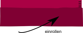 4. Dann der Länge nach einrollen, so dass die linken Stoffseiten zueinander zeigen.