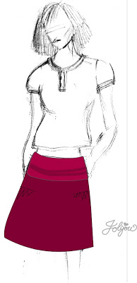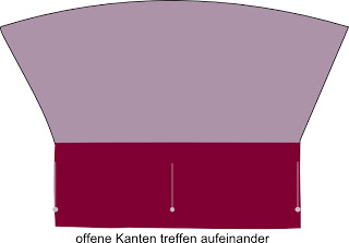 7. Das gleiche auch am Rock (der bereits an den Seiten zusammengenäht sein sollte, daher dienen die Setennähte als Markierungen).