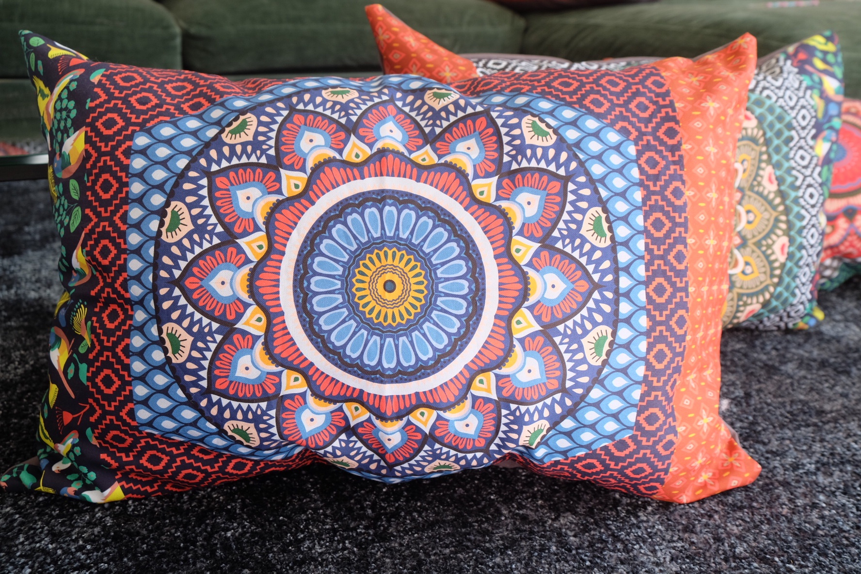 Die neuen Pillow Party Stoffe sind im Handel. Ich freue mich so sehr, dass ich diese tollen Kissenpaneele bereits in dritter Auflage für Swafing designen durfte. Das neue Design kommt mit komplett neuem Look, einem tollen Bonus, und ist wieder inspiriert von den Mustern aus fernen Ländern. Der Bonus ist die Webkante aus der du ganz einfach eine Paspelborte passend zu deinen Kissen nähen kannst. In dem Video zeige ich dir wie es geht.