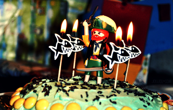 Herzlichen Glückwunsch, dem kleinen Piraten! Das ist ja genau die richtige Torte für eine wilde Seeräuber-Feier. Mein „Pirat“ ist im Februar vier geworden. Manchmal ist er aber auch ein Tiger oder ein Dino oder eine Prinzessin!