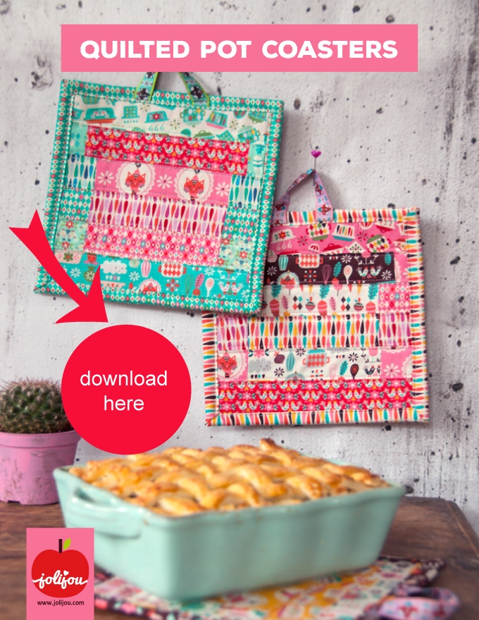 I am kicking off the blog tour today not only with some pear walnut pie (recipe from my new book) but also with a tutorial for quilted pot coasters for you to download if you would like to make them as well.