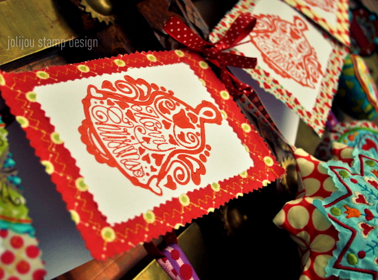 Colourful Christmas decoration made using the Bright Christmas embroidery file. Handmade cards with my own stamp design and candle covers with bright trees. We’re going to bake heaps of Christmas cookies over the weekend. Have a great one!