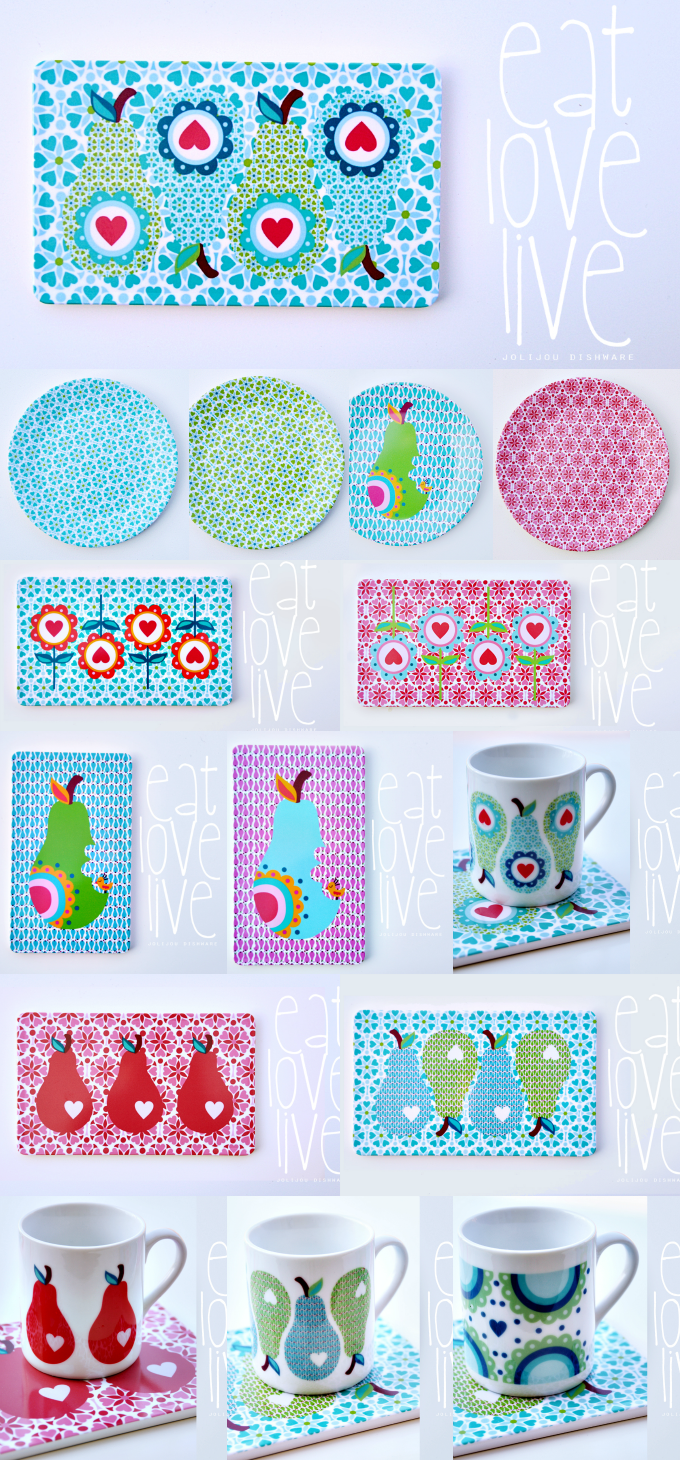 Das Birnen-Thema hat mich so inspiriert, dass ich gar nicht mehr aufhören wollte zu zeichnen.In den letzten Tagen sind also jede Menge neue Teller, Tassen, Frühstücksbrettchen und Karten passend zum Stoff, aber natürlich nicht nur dazu, eingetroffen und ich bin so glücklich, dass sie so geworden sind wie ich sie mir vorgestellt habe. Das ist immer sehr spannend wenn man neue Entwürfe in Auftrag gibt!